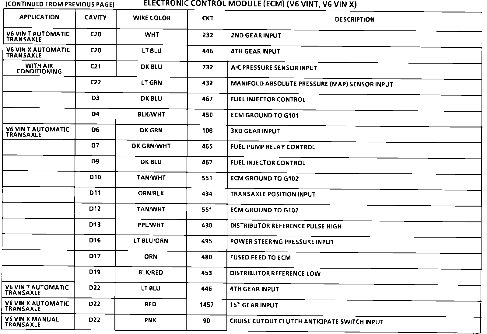 Electronic Control Module (ECM) Connector Faces: