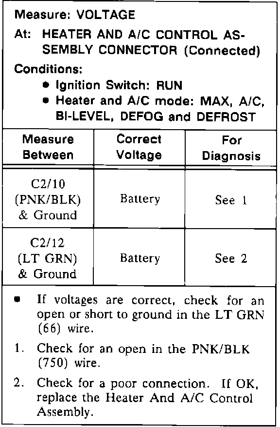 Test E: A/C Compressor Function Control Test: