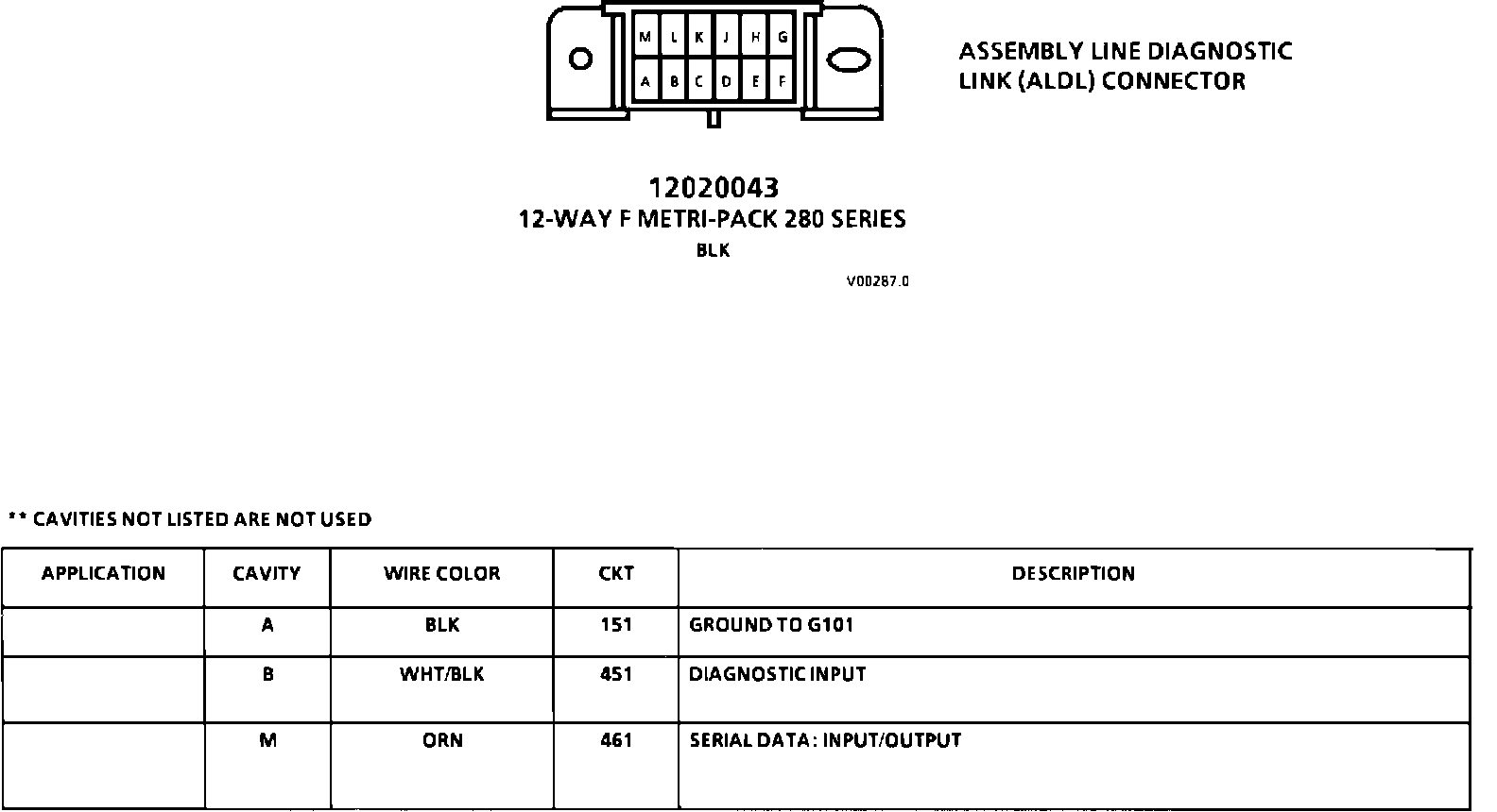Assembly Line Diagnostic Link (ALDL) Connector Face: