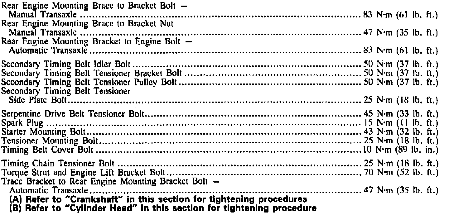 Torque Specifications (continued):