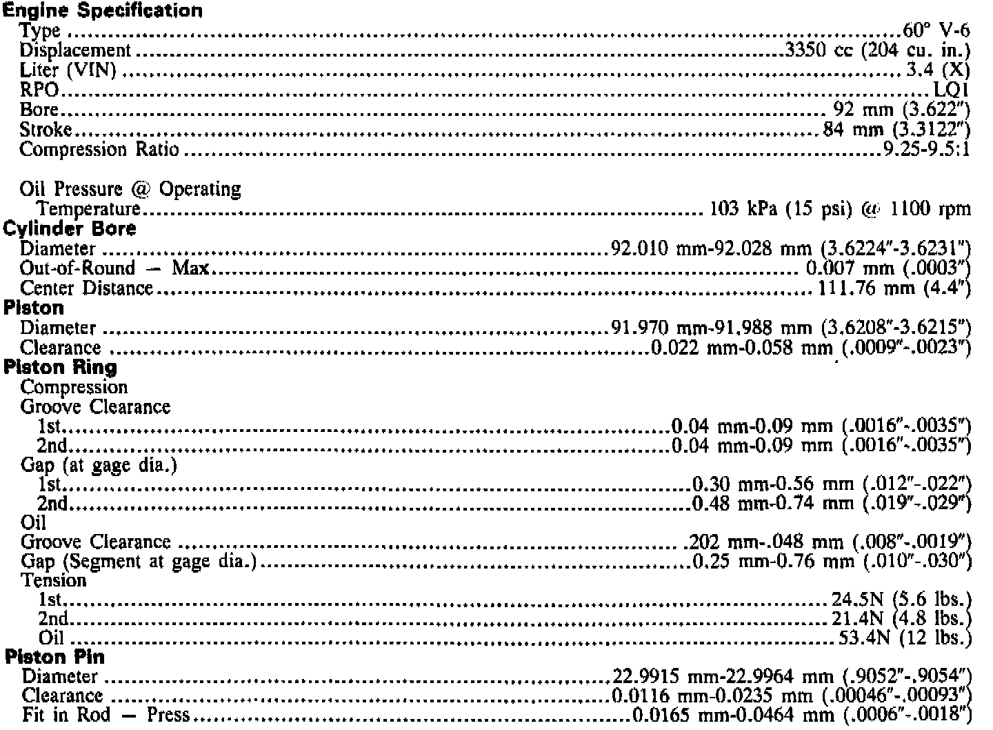 Lumina V6-204 3.4L DOHC