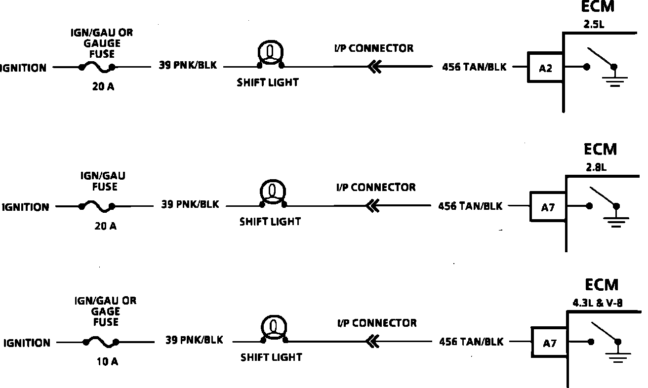The ECM uses the measured rpm and the vehicle speed to calculate what gear the vehicle is in. It's this calculation that determines when the shift light should be turned "ON".