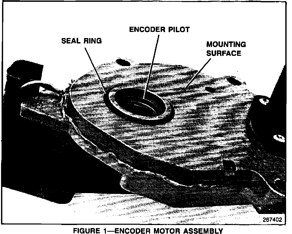 It is very important that the mounting surfaces be clean and free of debris. The sealing O-ring must be correctly in place on the encoder pilot to ensure a positive seal (Figure 1).