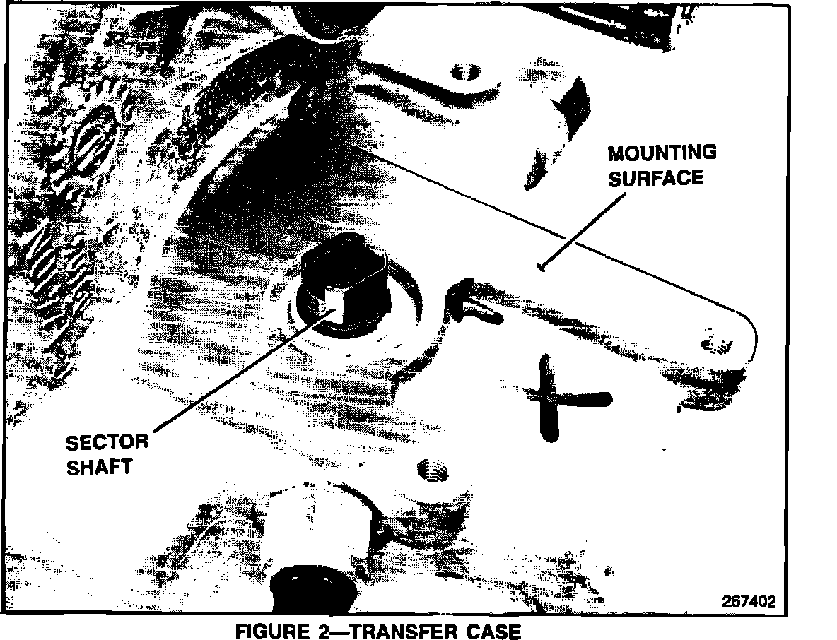 Check the alignment of the transfer case sector shaft with the drive sleeve in the encoder motor assembly. The transfer case should be in 4-High (The flats on the sector shaft vertical) for proper alignment. Rotate the transfer case sector shaft for proper alignment if required.