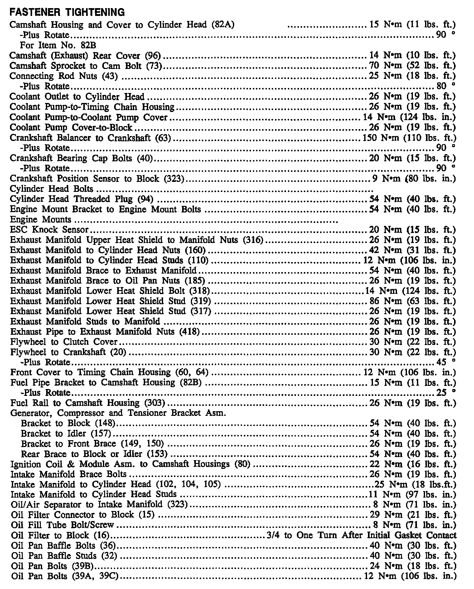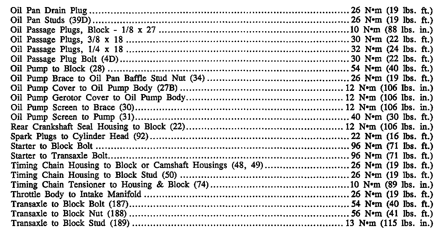Continued Torque Specifications: