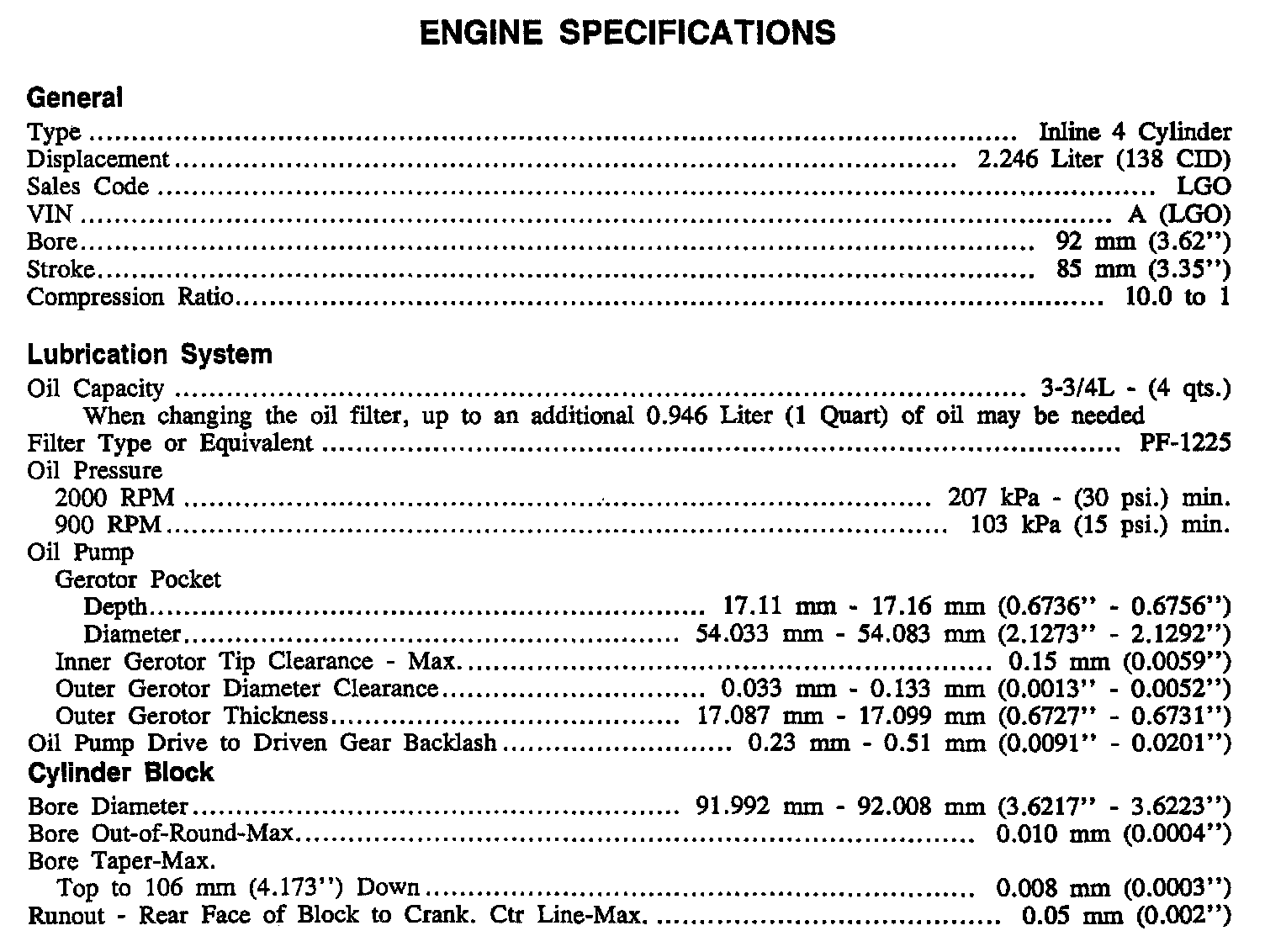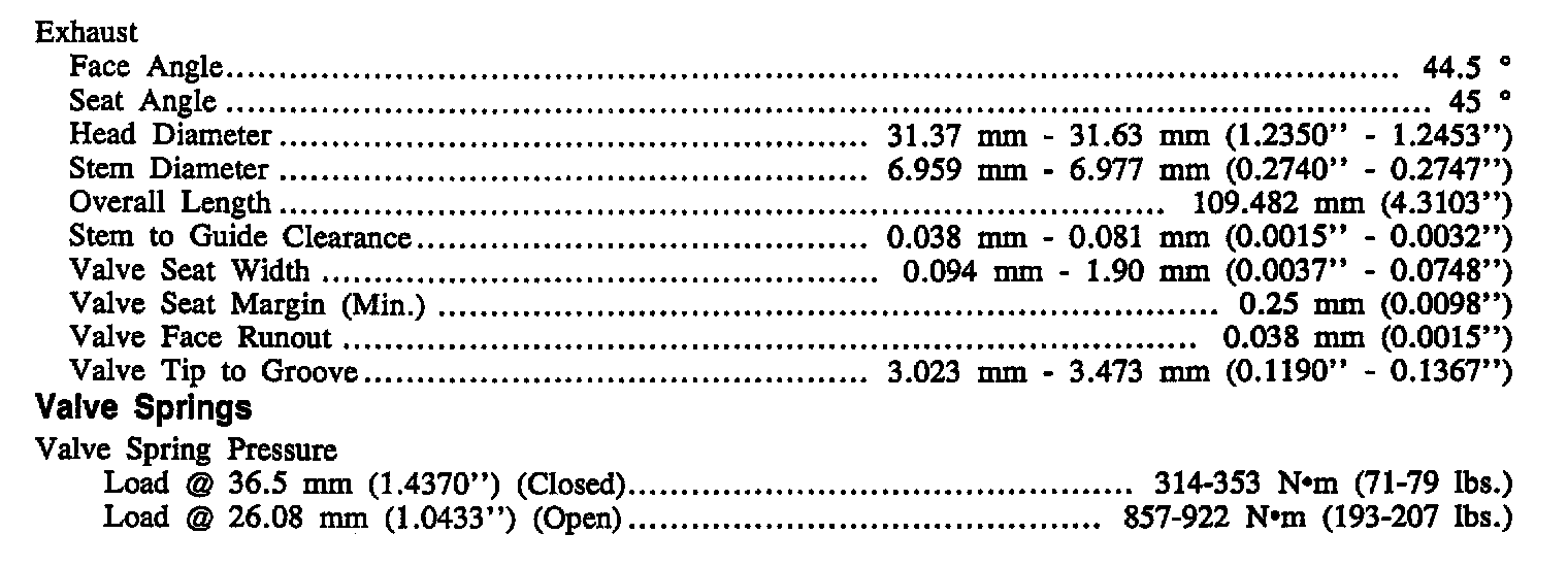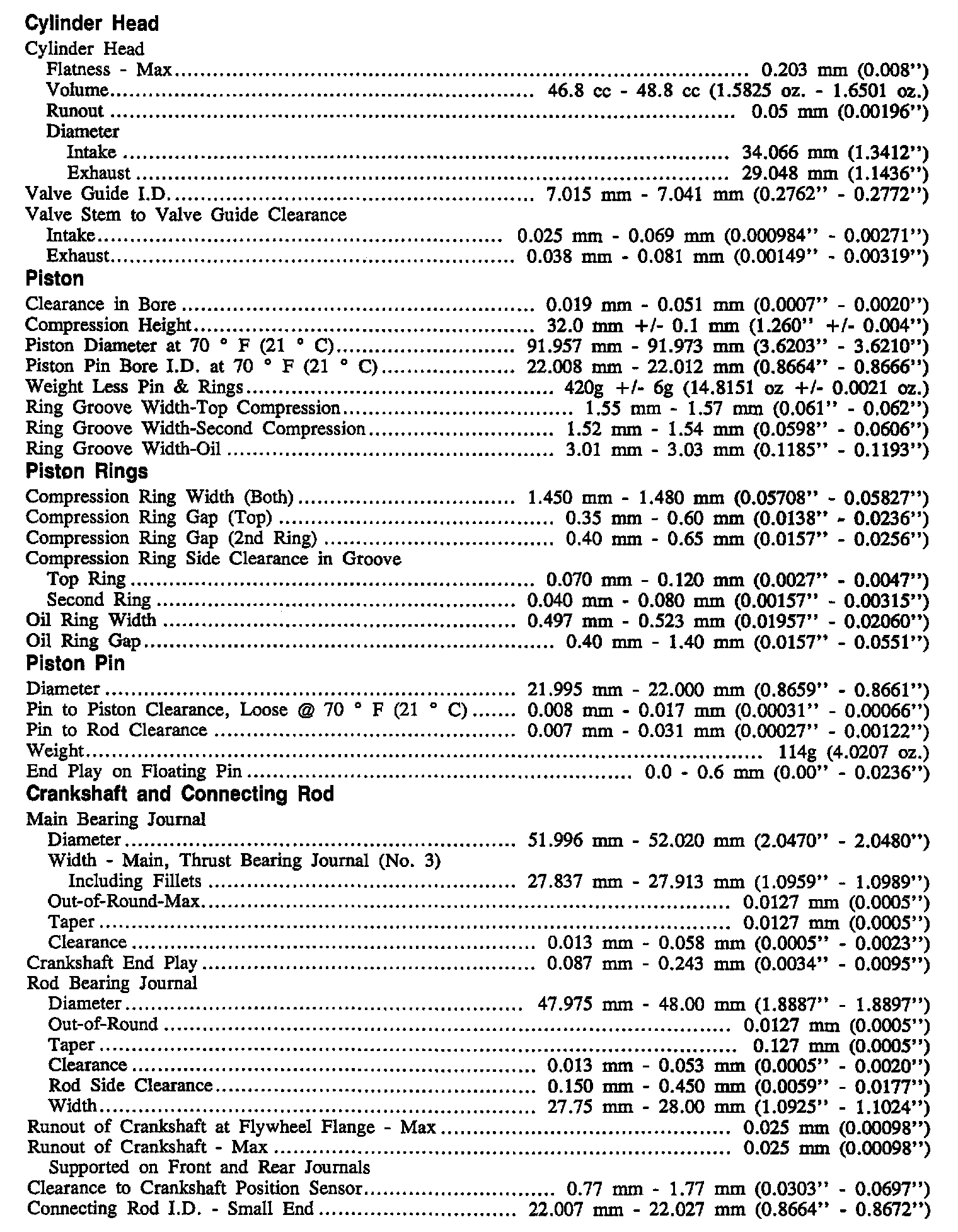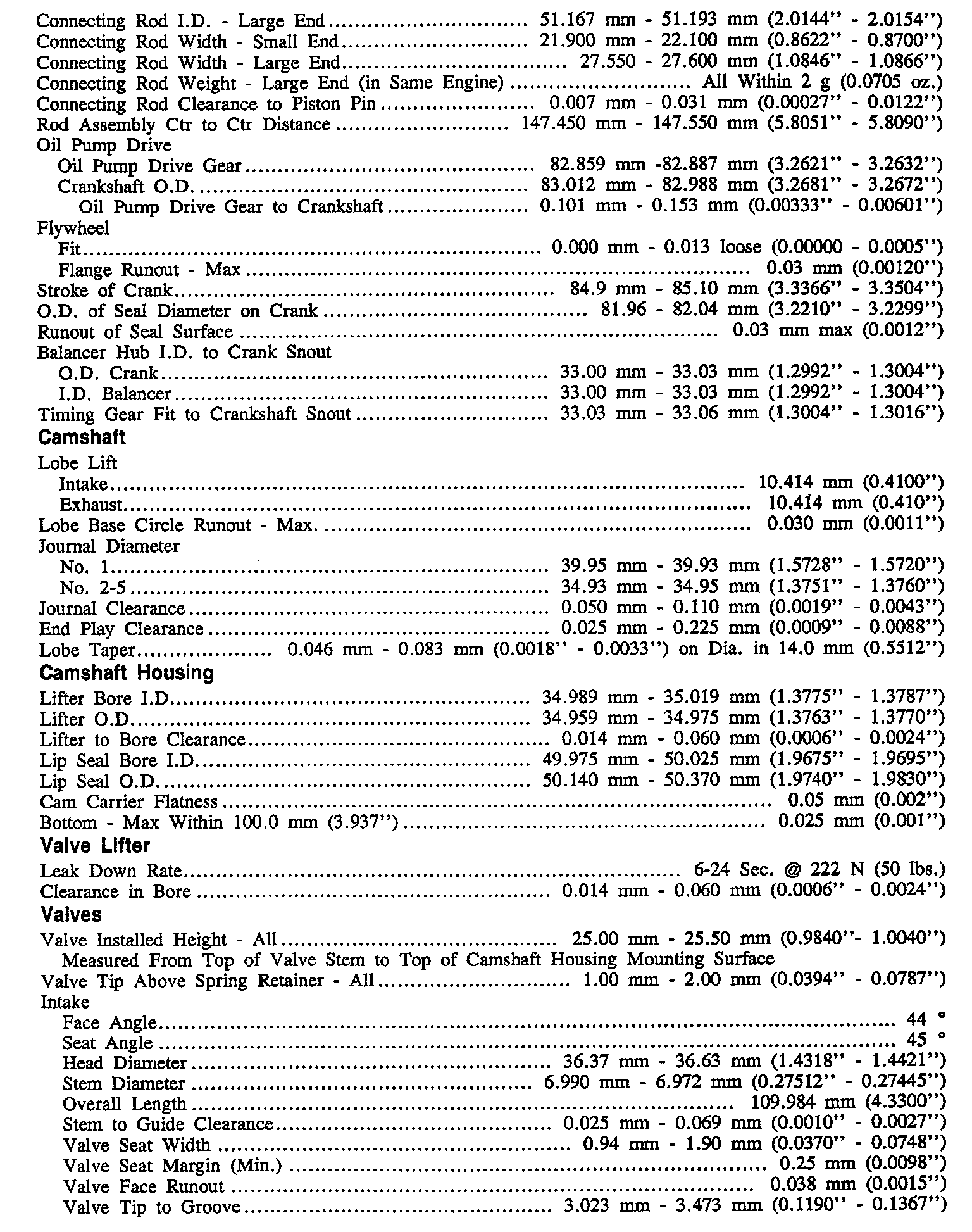 Continued Engine Specifications: