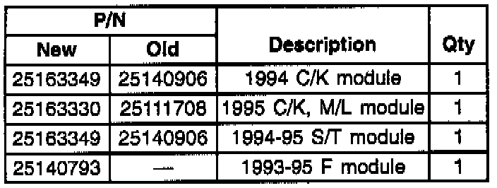 For 1994-95 Chevrolet and GMC Truck C/K, S/T, M/L Models: Follow the SMCC MODULE remove and install procedure using the appropriate service manual.