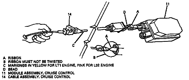 b. Disconnect cable bead from cruise motor band end fitting on module, Fig. 41.