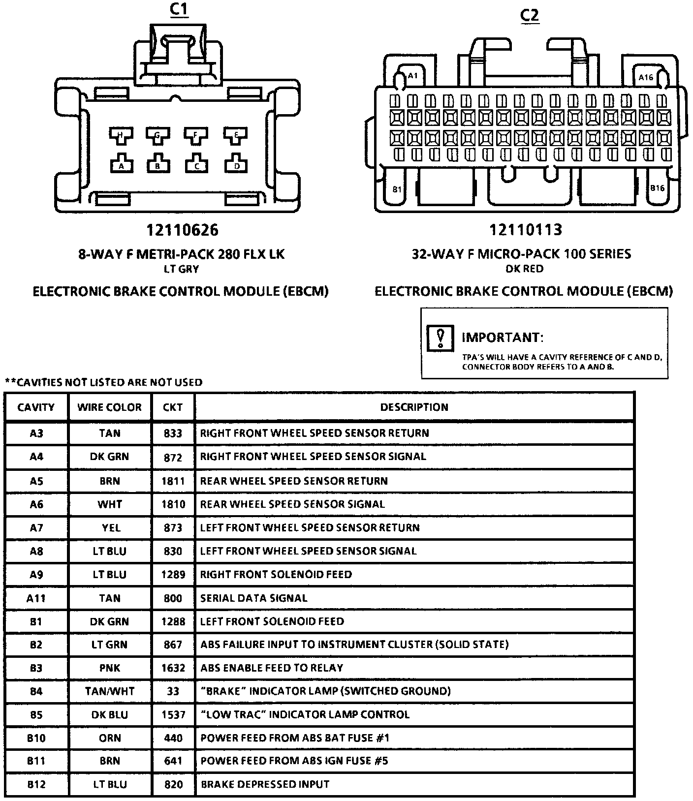 Electronic Brake Control Module (EBCM), C1 & C2:
