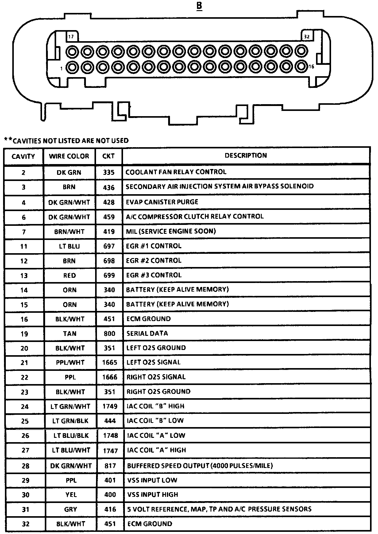 Sequential Fuel Injection V6 VIN S: Engine Control Module, Connector B: