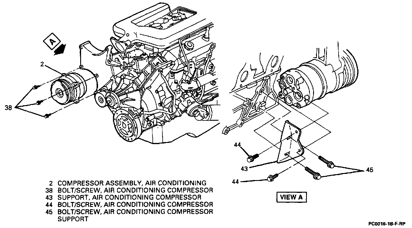 12. Bolts/screws (44) and support (43) on 3.4L L32 engine only, if necessary.
