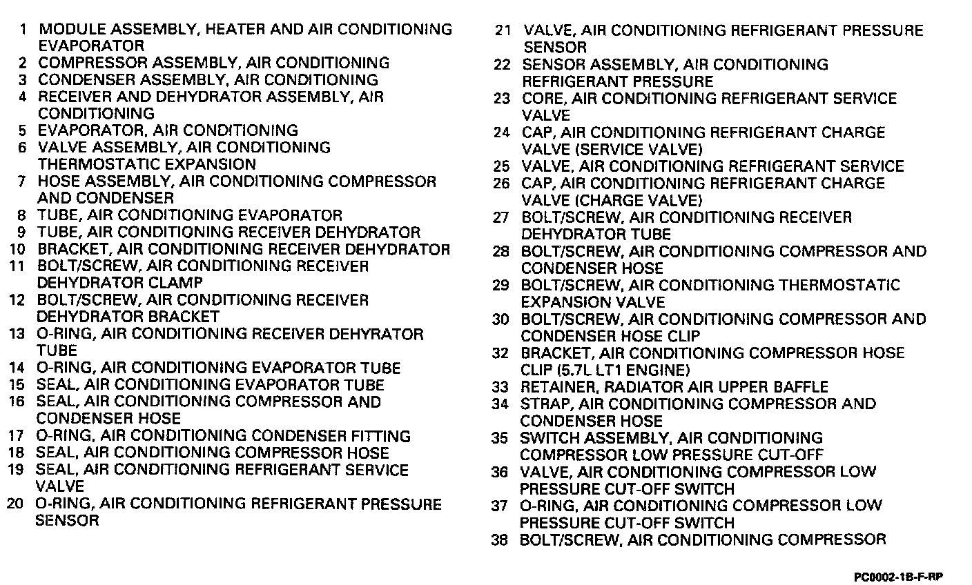 Refrigerant System Components - Legend: