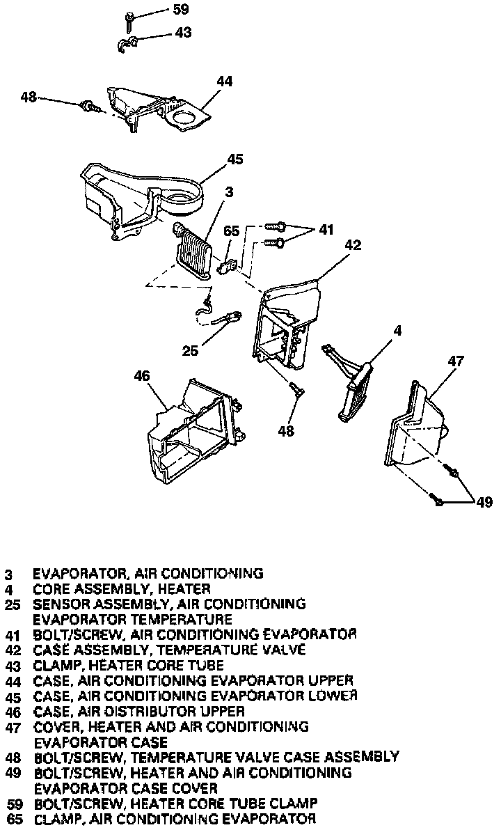 c. Apply sealer 3012078 between evaporator upper and lower case just behind thermostatic expansion valve assembly to prevent air entry from engine compartment.