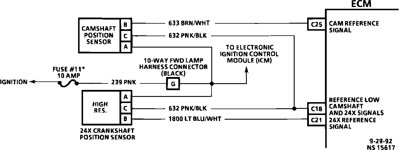 24X Crankshaft Position Sensor - uses the 24 evenly spaced blades and windows on the interrupter ring. The Hall-effect switch produces 24 "ON-OFF" pulses per crankshaft revolution.