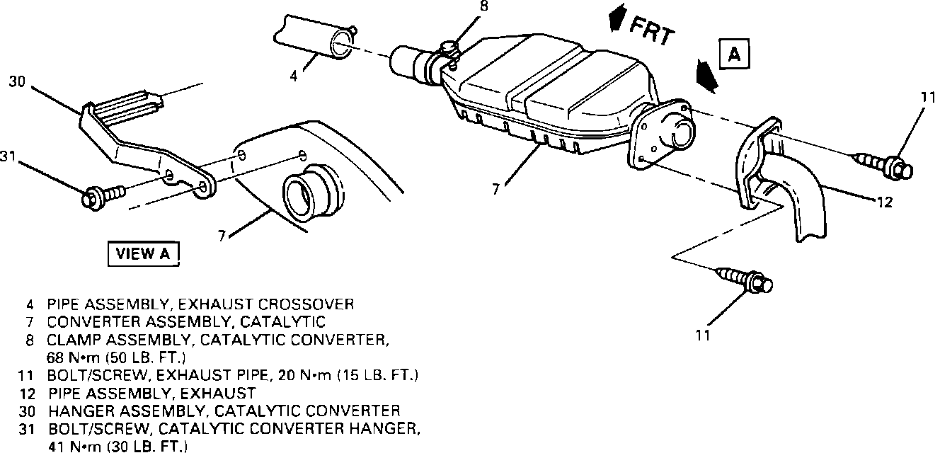 2. Remove converter clamp assembly at exhaust crossover pipe assembly