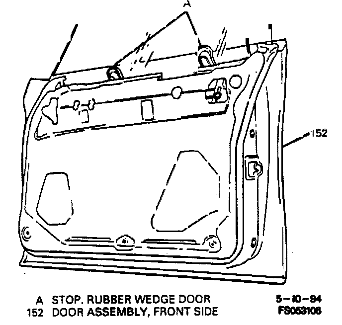 4. Support window in position by inserting rubber wedge door stops at front and rear of window between window and door inner panel.