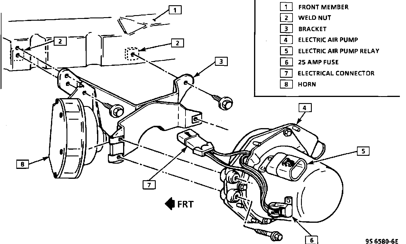 4. Two air pump mounting bolts to front member
