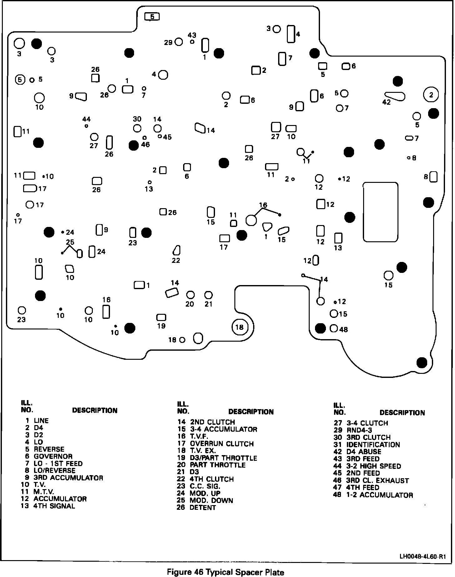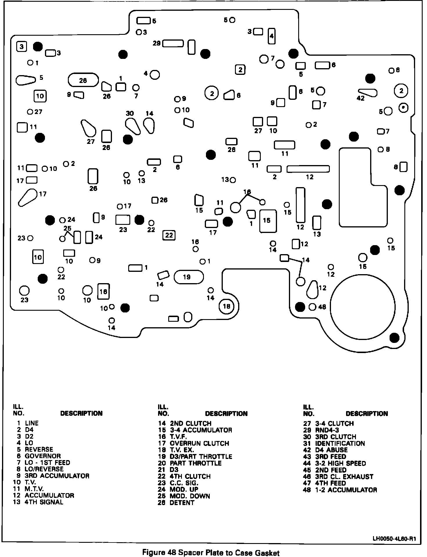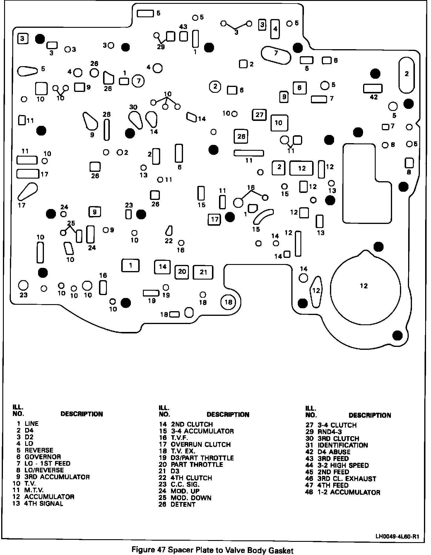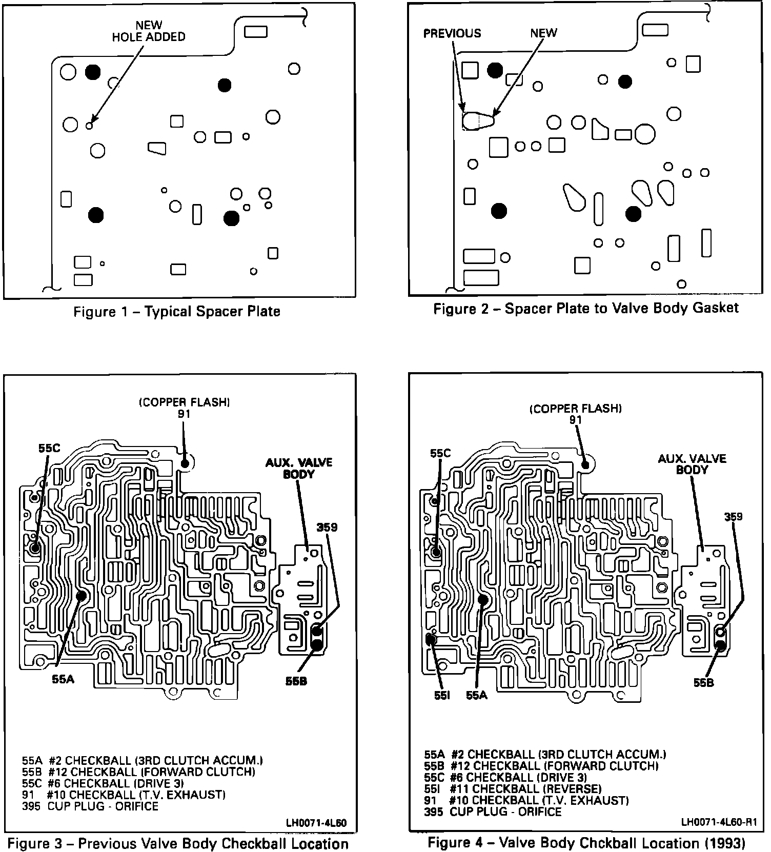 Beginning with Start of Production 1993, HYDRA-MATIC 4L60 transmissions were built with an improved park to reverse engagement. An added check ball in the reverse passage of the valve body (551) and new spacer plate to case gasket (Ill. 88) and a new spacer plate to valve body gasket (Ill. 89) were all needed for this improvement.