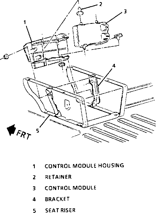 2. Remove control module mounting bracket under drivers seat. Lift and twist to remove from under seat.