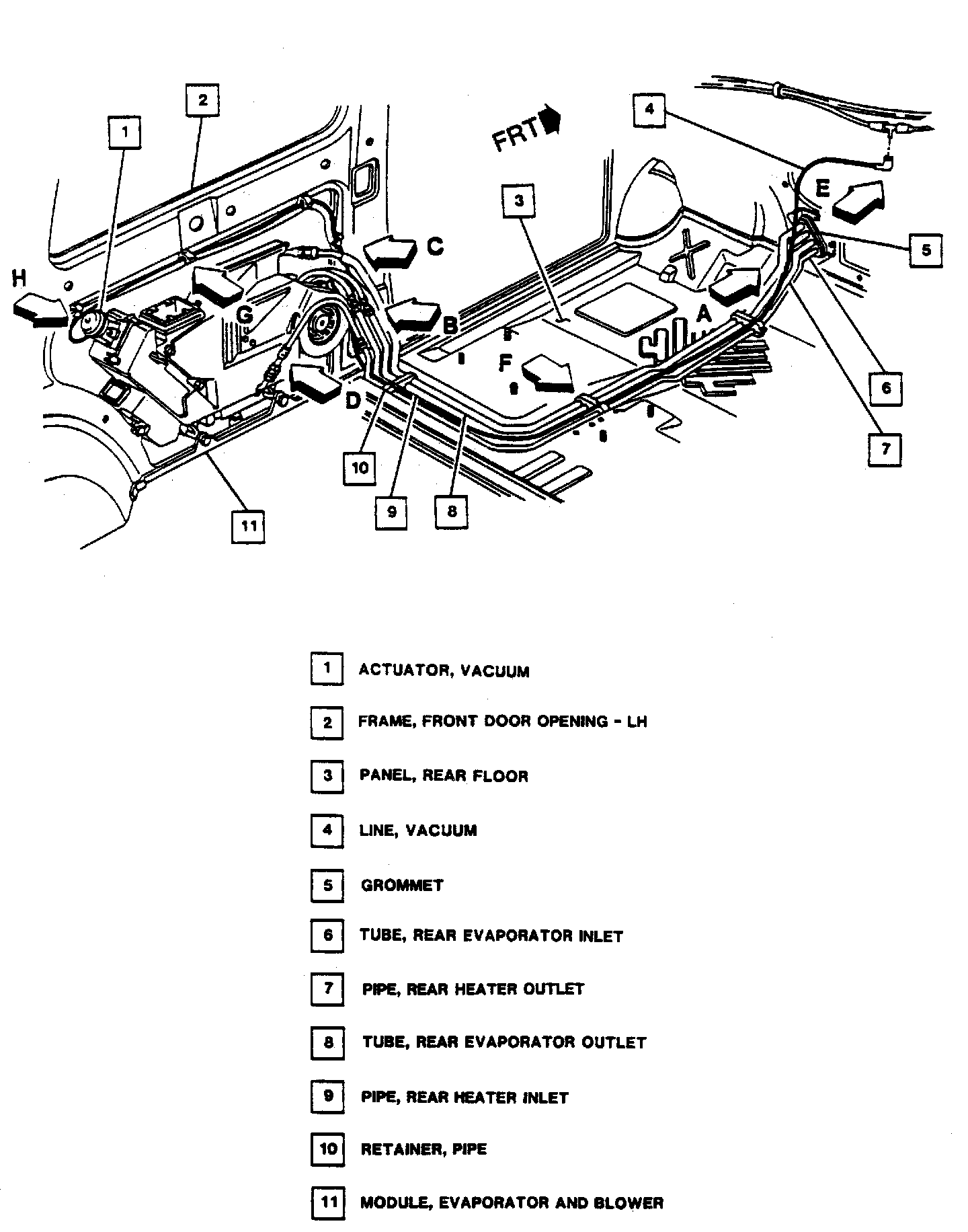 10. Electrical connector through center pillar/quarter lower trim panel and onto blower switch.