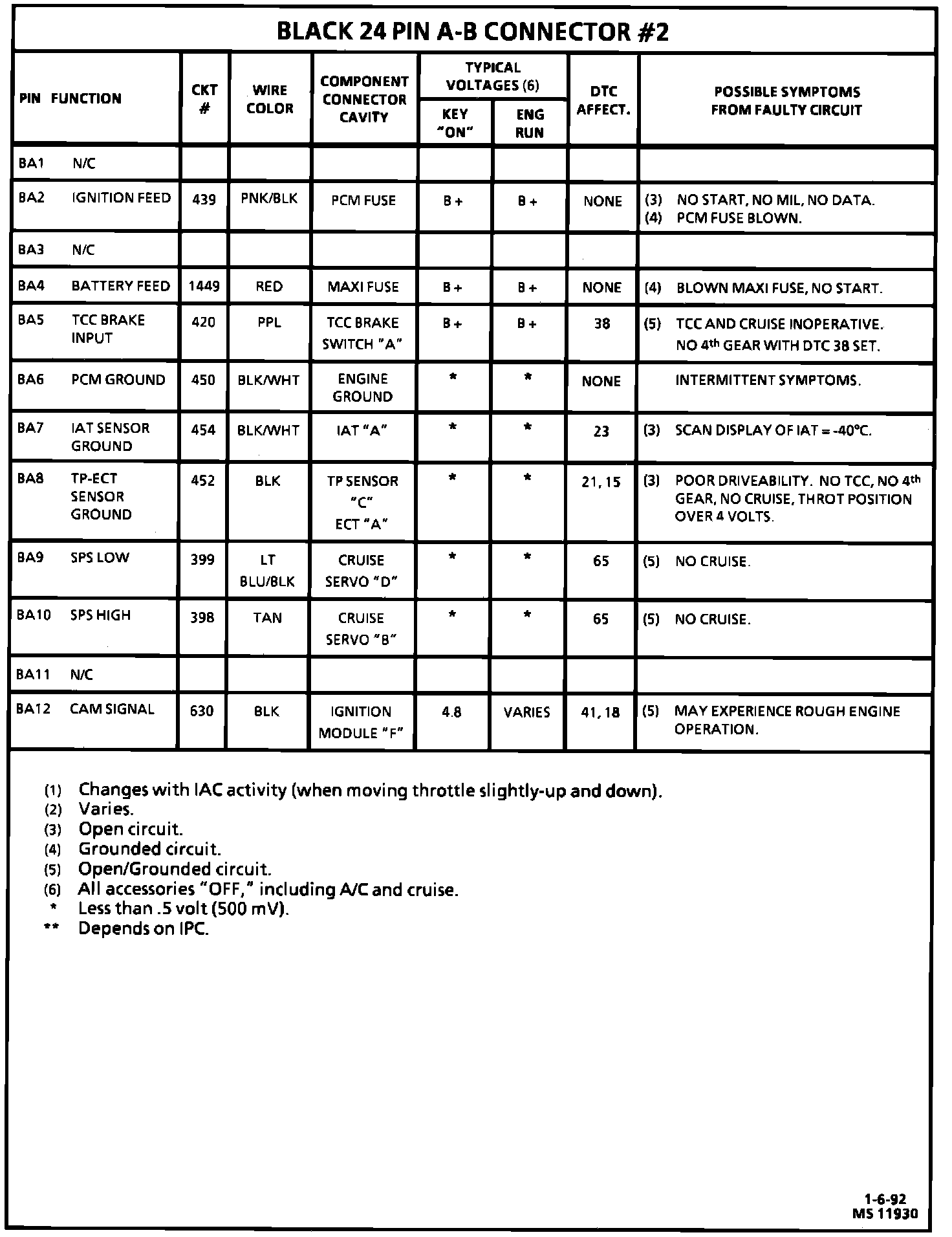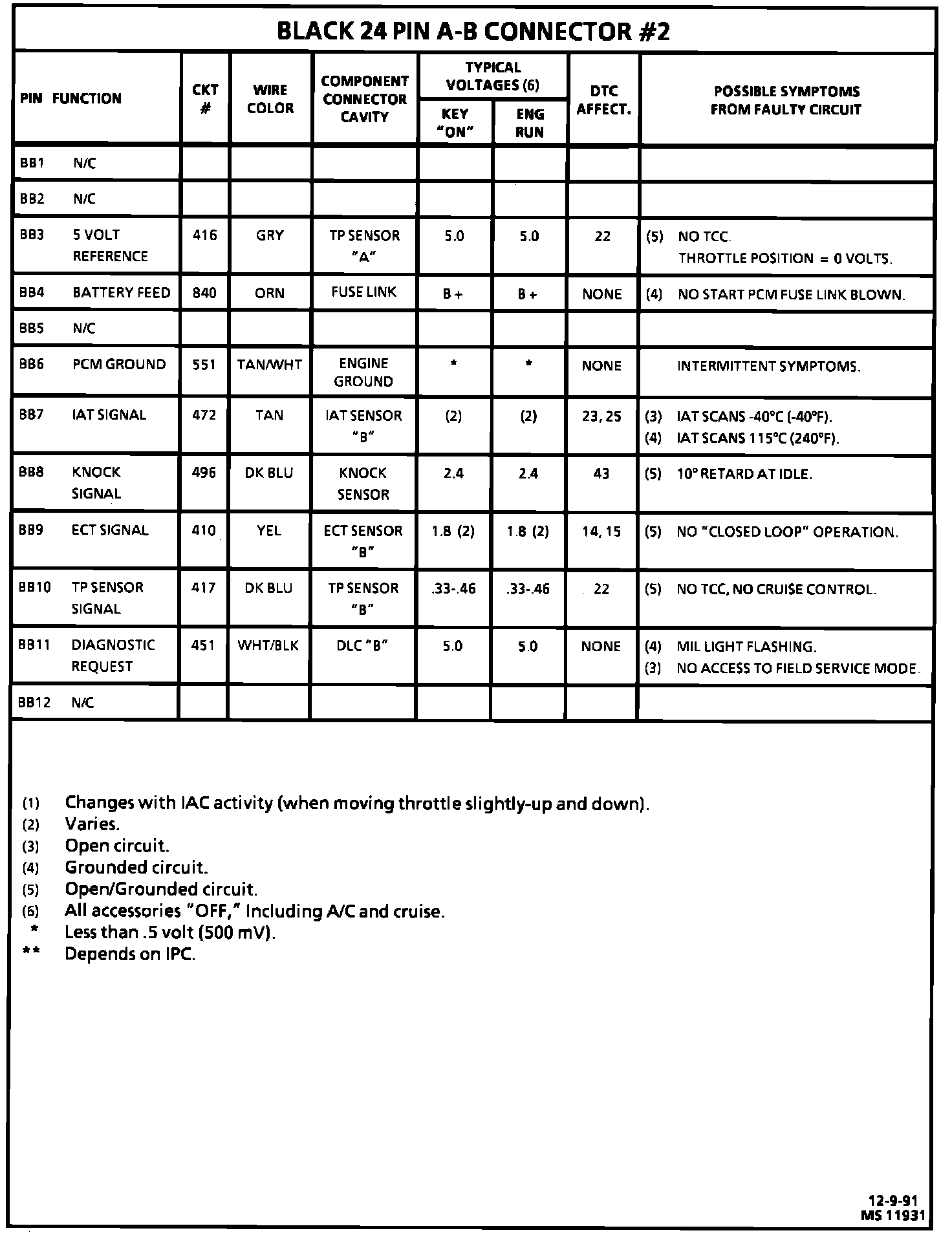 PCM Connector Symptom Diagnosis Chart:
