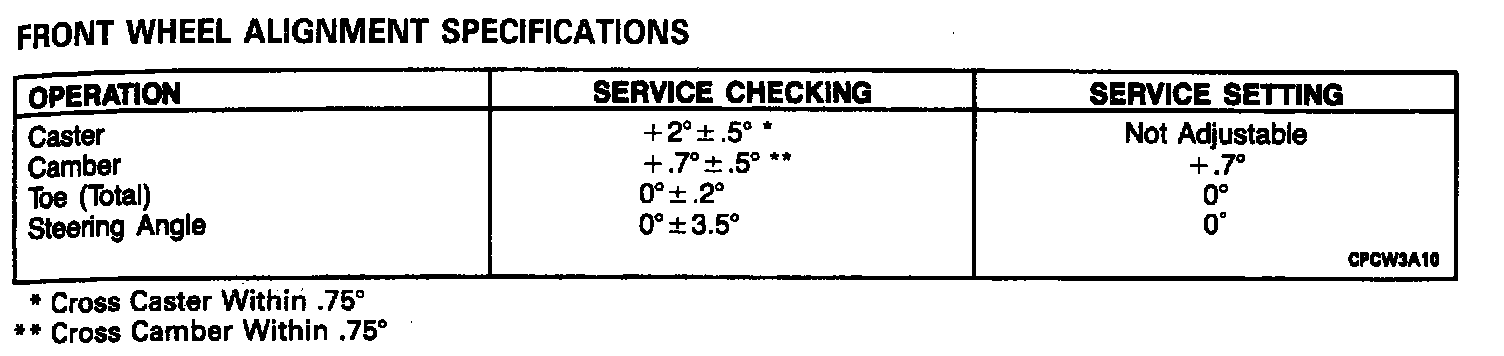 Front Alignment Specifications