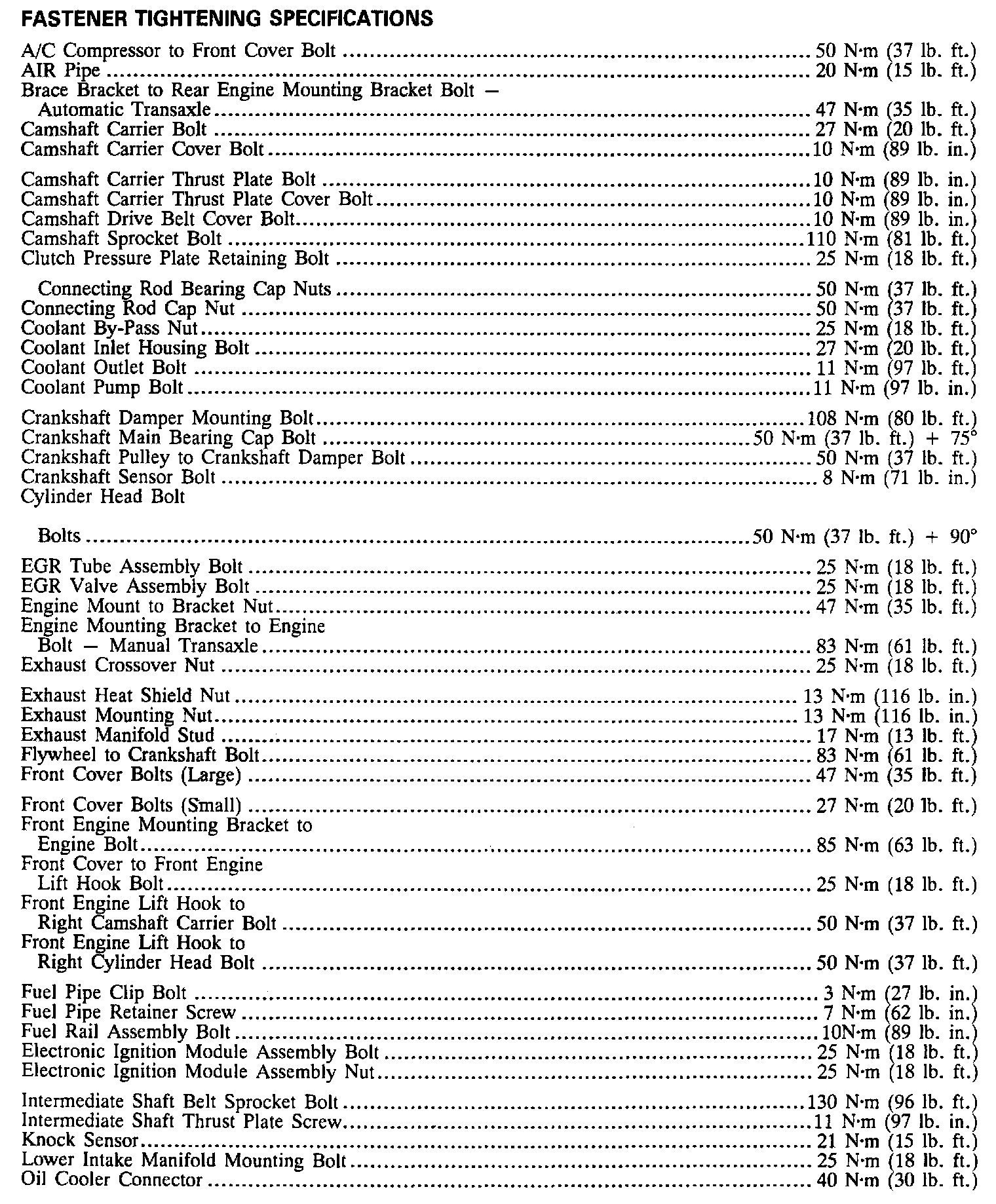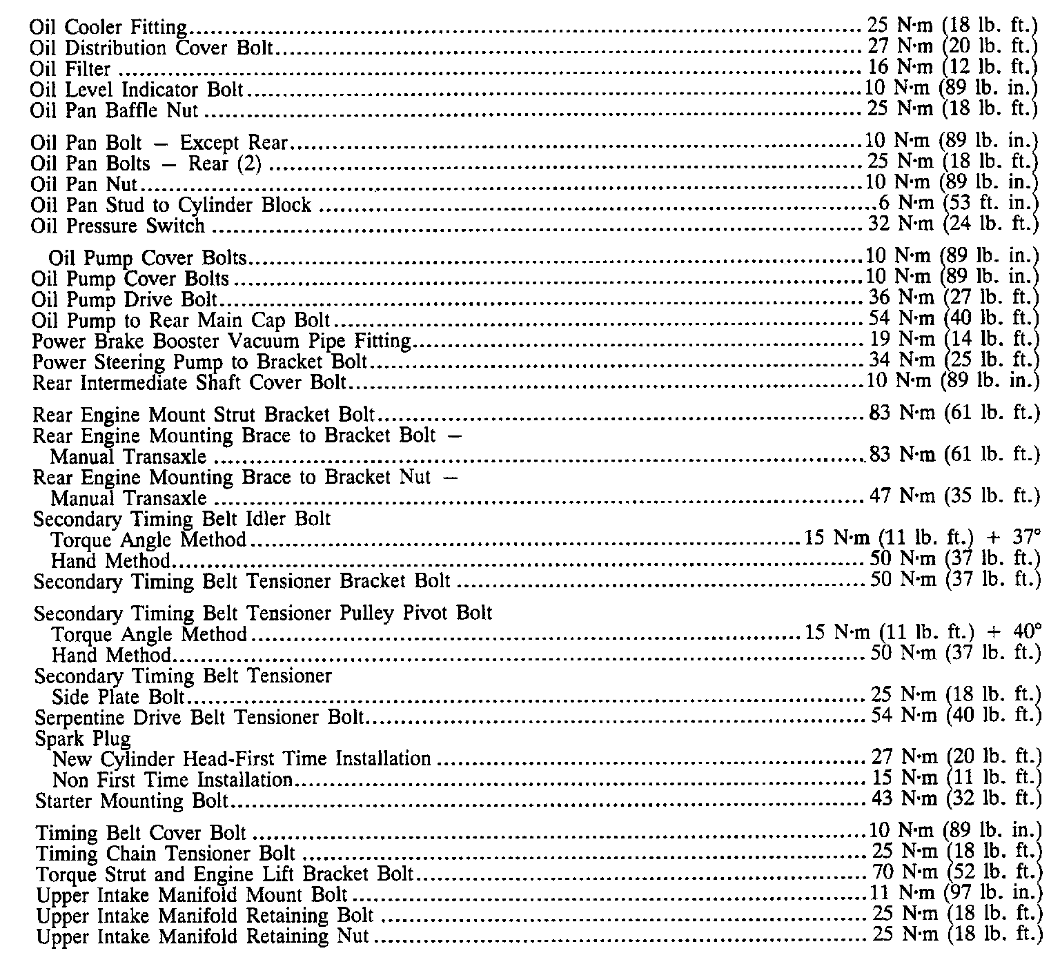 Continued Torque Specifications: