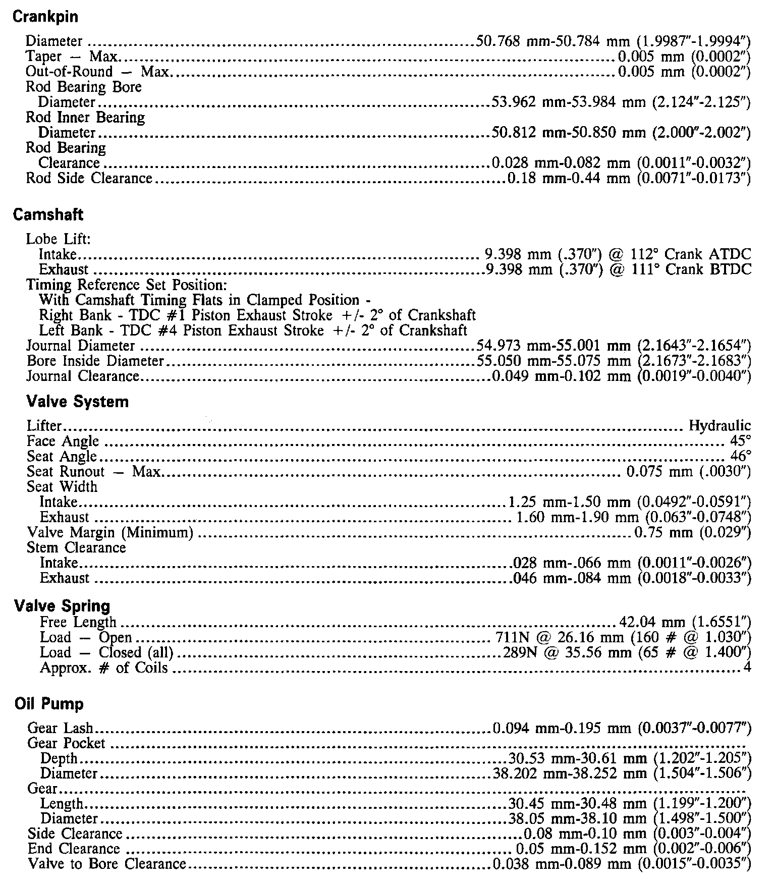 Continued Engine Specifications: