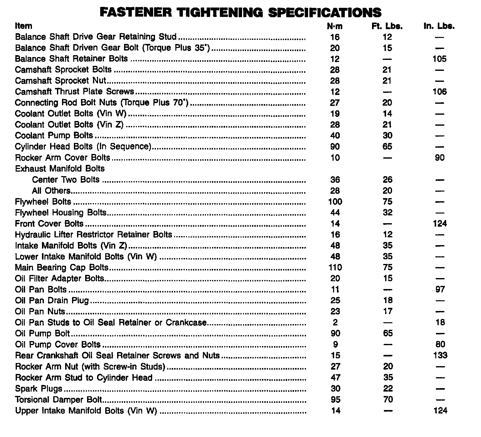 Torque Specifications: