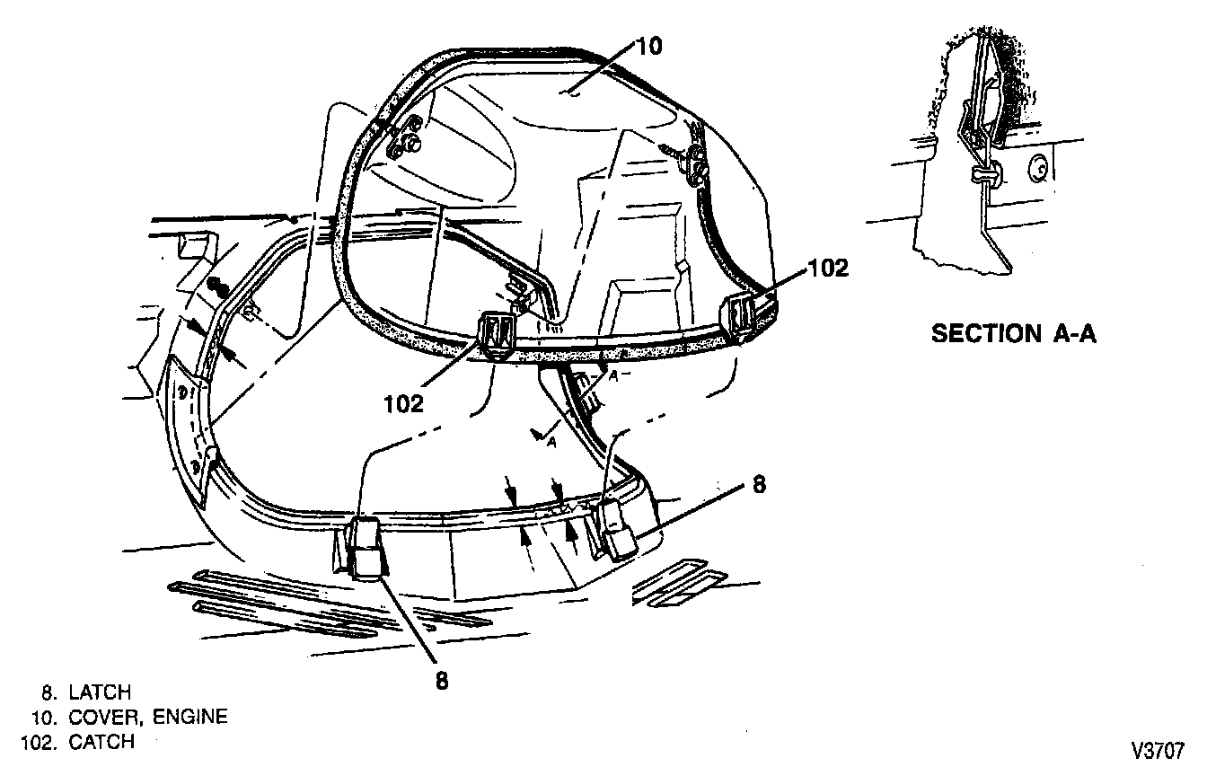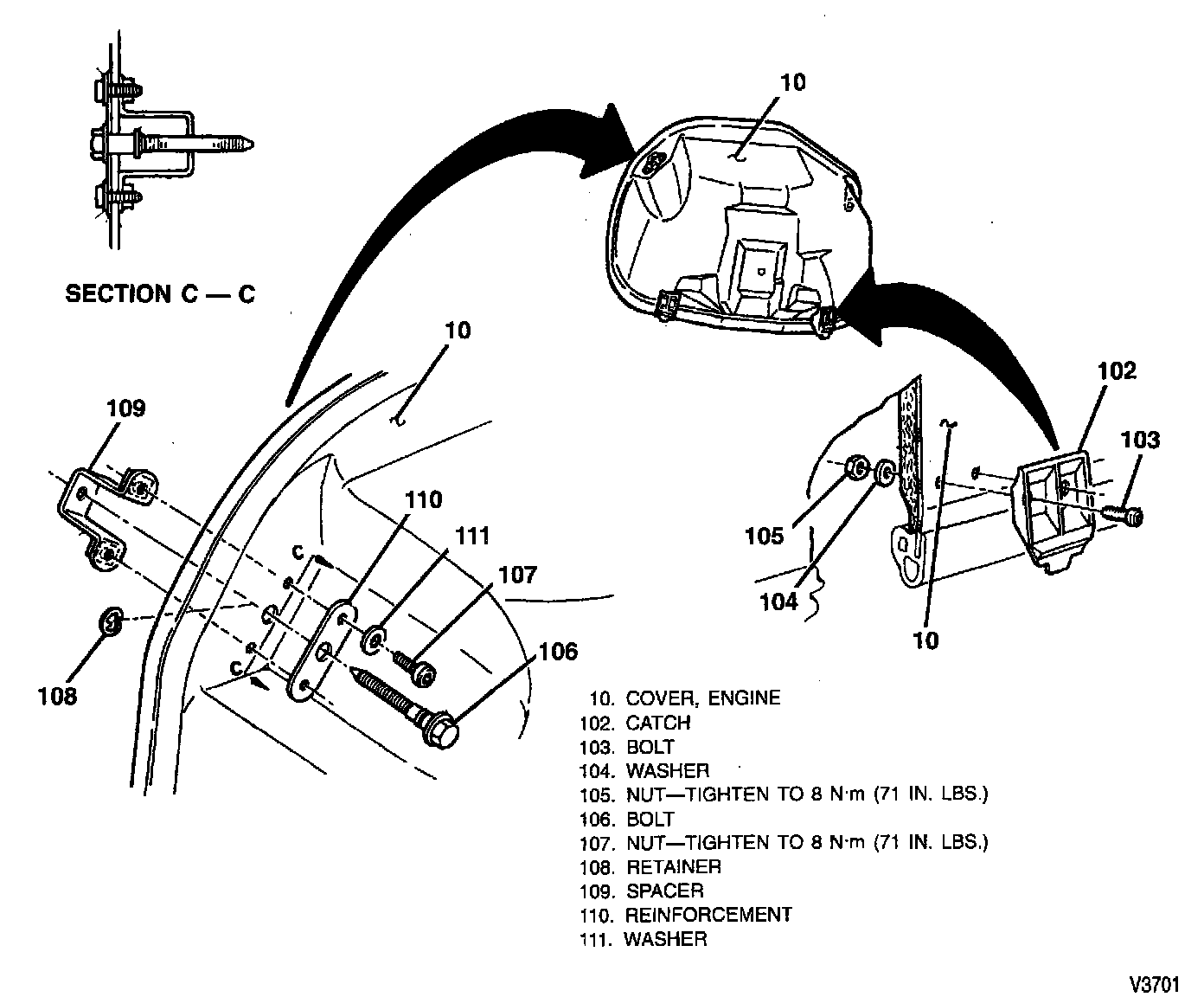 Engine Cover Upper Retainer & Lower Catch: