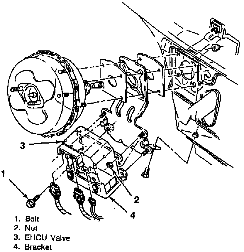 6. Remove EHCU/BPMV bracket attaching nuts and bolt, Fig. 223.