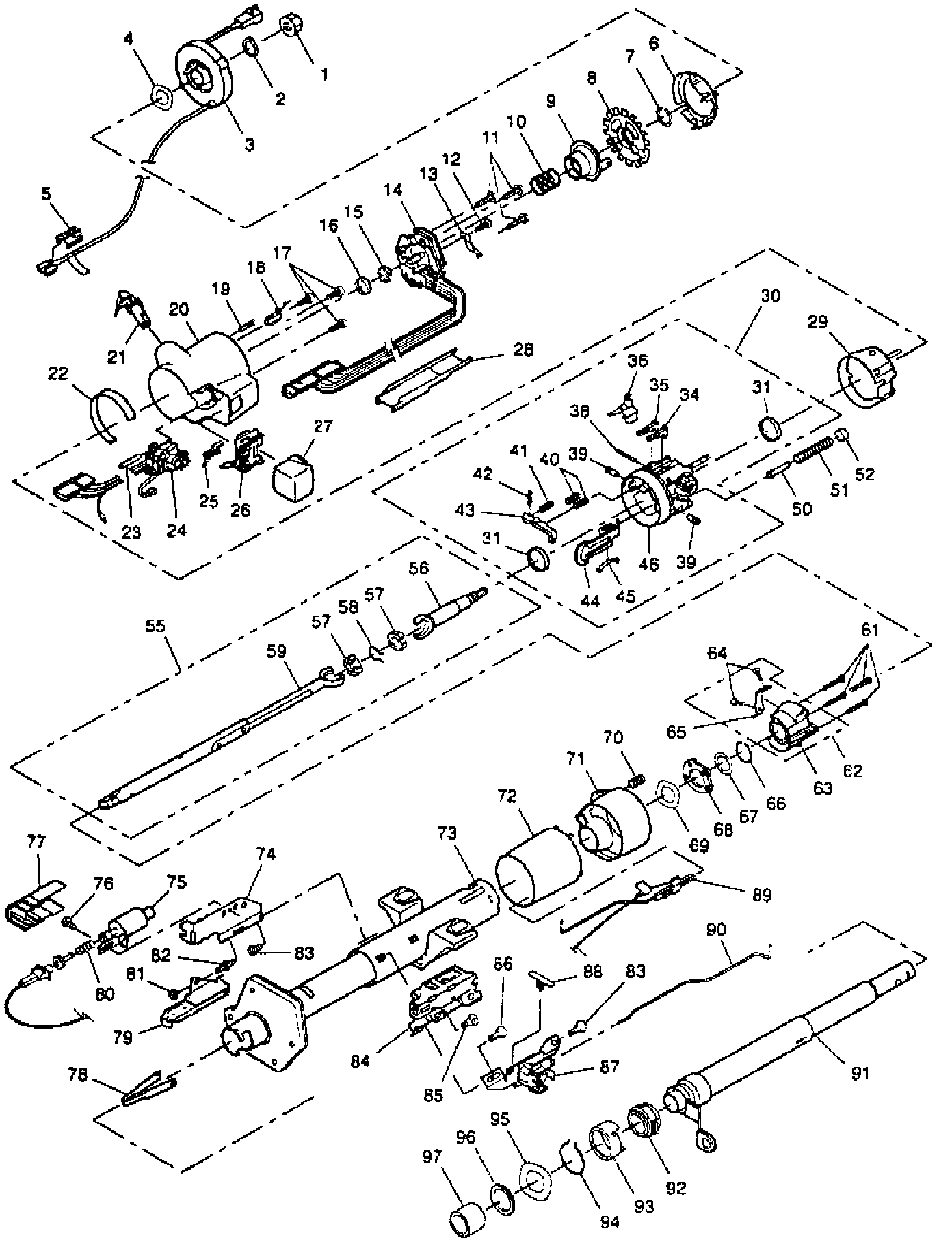 Fig. 35 Exploded View Of Tilt Steering Column:
