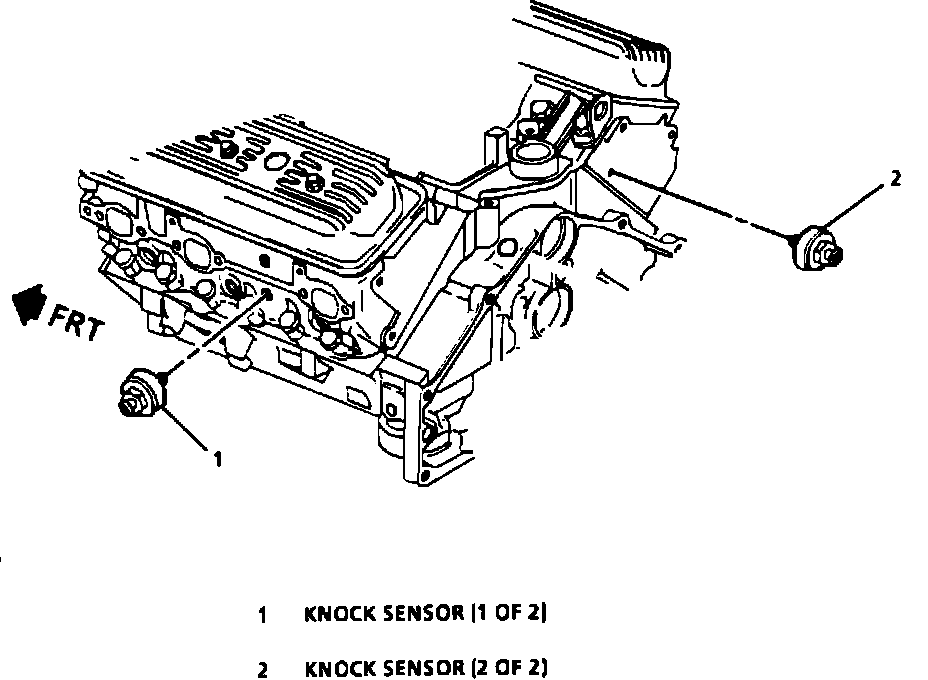 The Knock Sensors (KS) are mounted in the right rear cylinder head and the left cylinder head between the rear spark plugs.