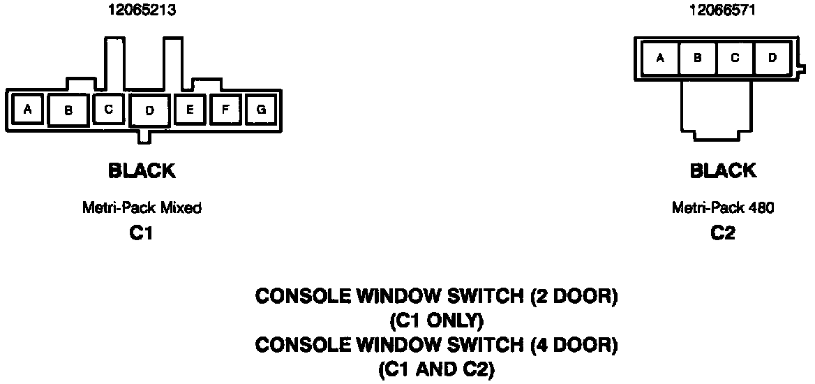 Harness Connector Faces: Console Window Switch: