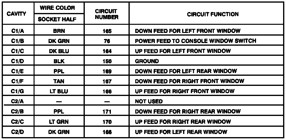 Harness Connector Faces: Console Window Switch (Description):