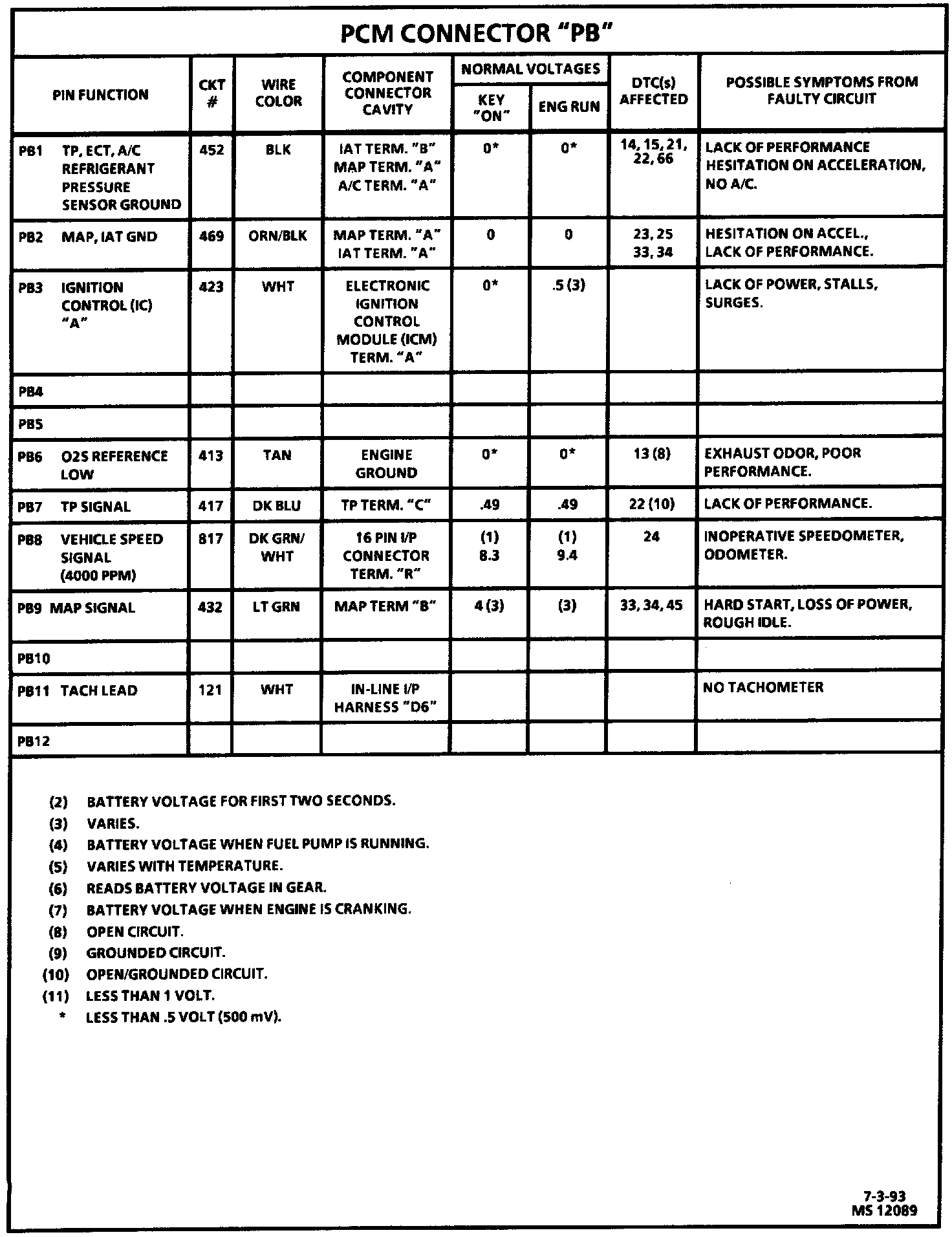 PCM Connector "PB" Symptom Diagnosis: