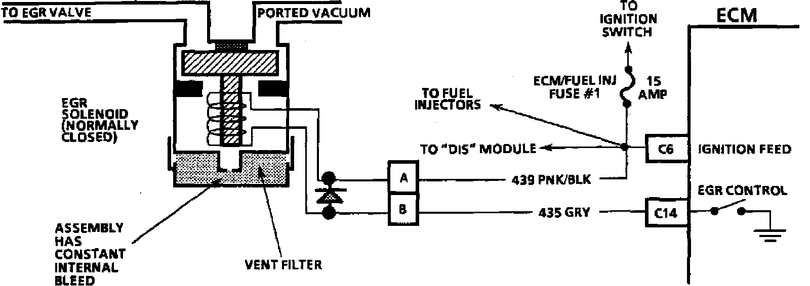 The fuel control in this engine is conducted within 4 block learn cells. Since EGR is not used at idle, the idle cell would not be affected by EGR system operation. The other block learn cells are affected by EGR operation, and when the EGR system is operating properly, the block learn values in all cells should be close to the same. If the EGR system becomes inoperative, the block learn values in the open throttle cells would change to compensate for the resulting lean mixtures, but the block learn value in the closed throttle cell would not change.