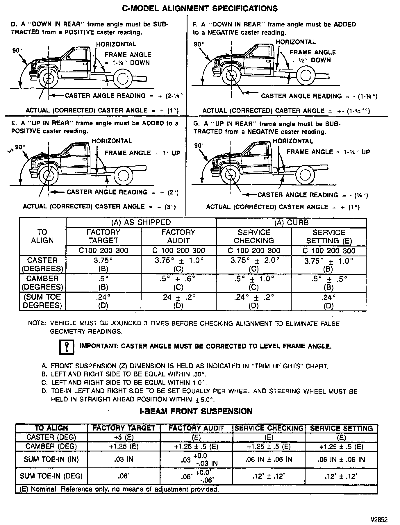 As originally installed, the upper control cannot be adjusted for caster and camber. However, if the caster or camber is measured and found to be out of tolerance, the caster and camber can be set to the proper specifications.
