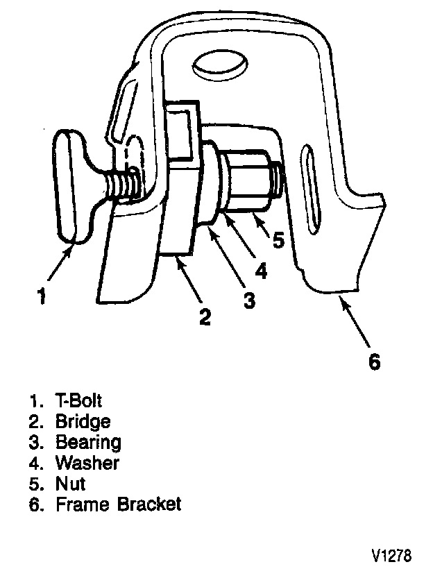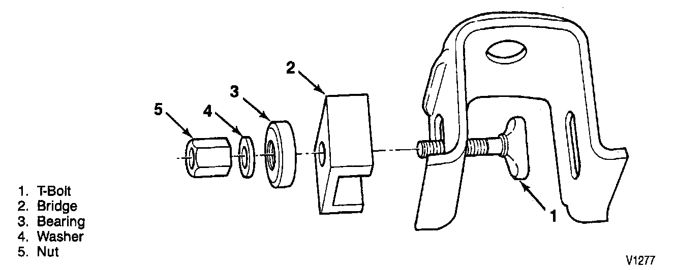^ Install bridge onto T-bolt. The forward bracket requires the bridge to be installed between the legs of the bracket due to access problems.