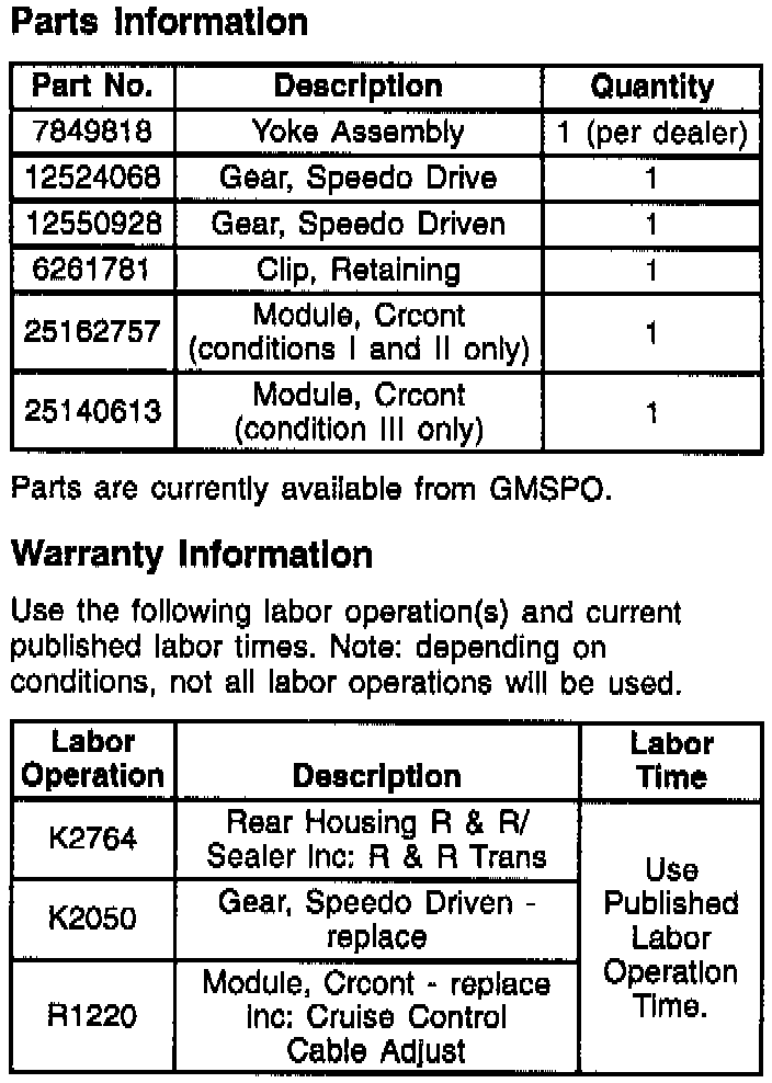 Applies to only 1995 V6 ENGINE equipped vehicles regardless of transmission type. The reduced gain cruise control module used to address "Condition I" and "Condition II" may be the cause of the slow response from the cruise control system in maintaining set speed.