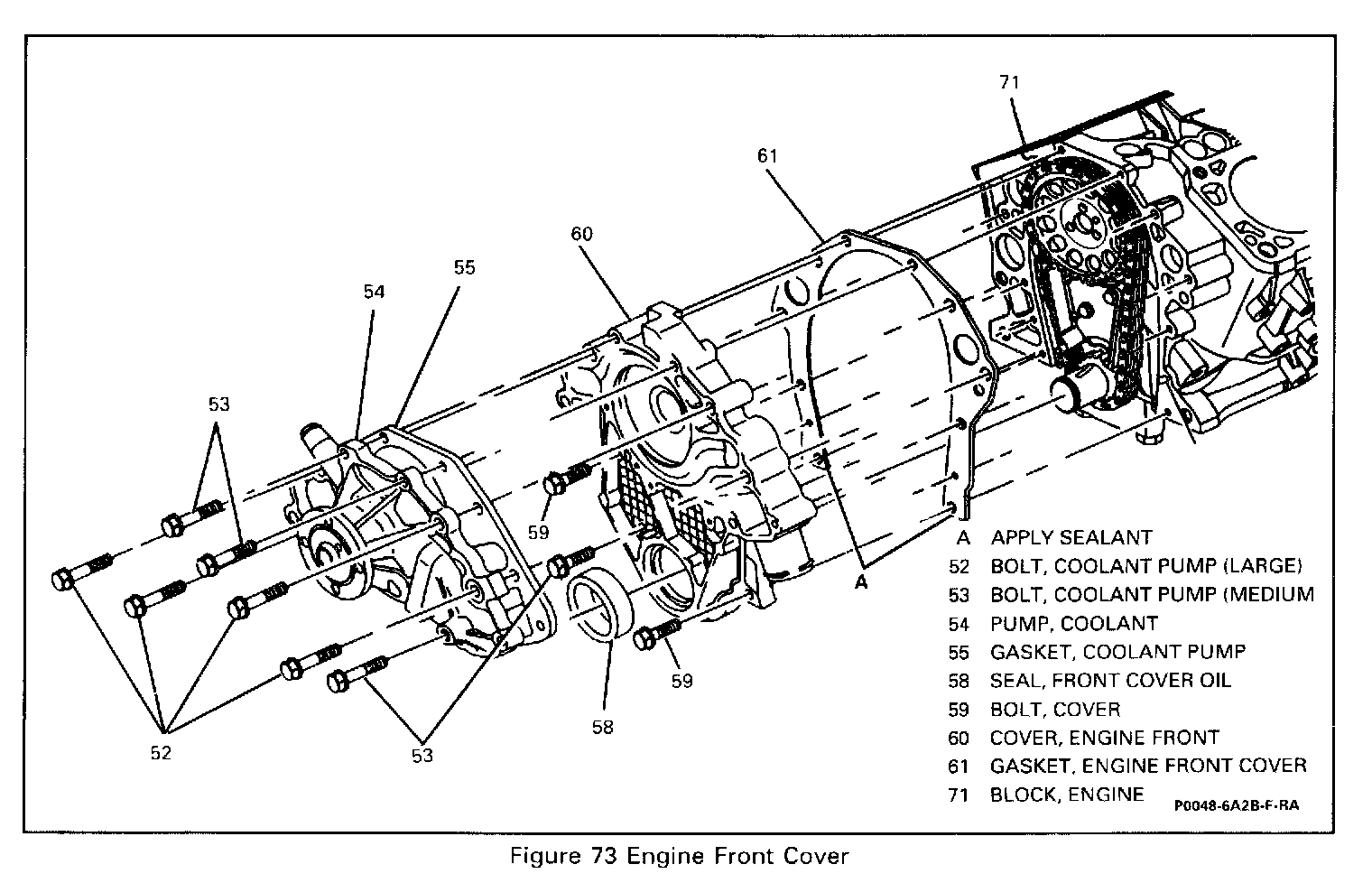 Uniformly coat both sides of the lower tabs of the front cover gasket (61) with sealer GM p/n 1052080.