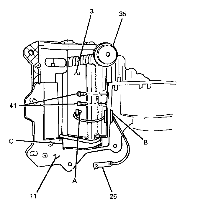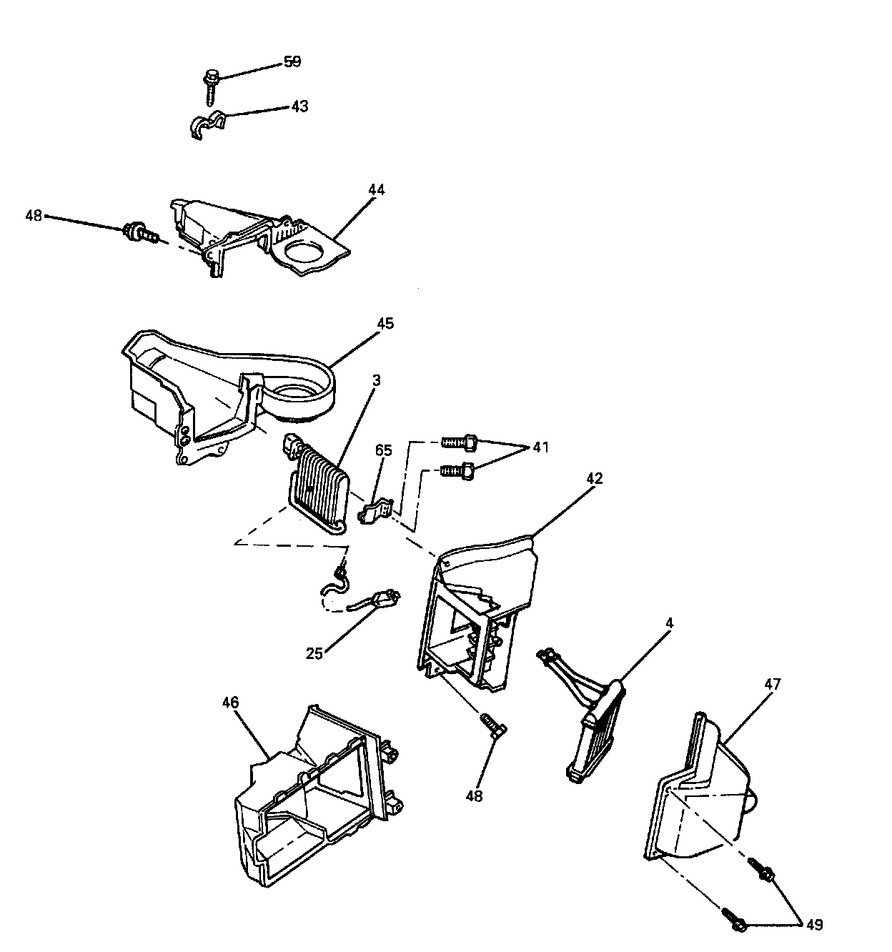 2. Bolts/screws (41) to air conditioning evaporator (3).