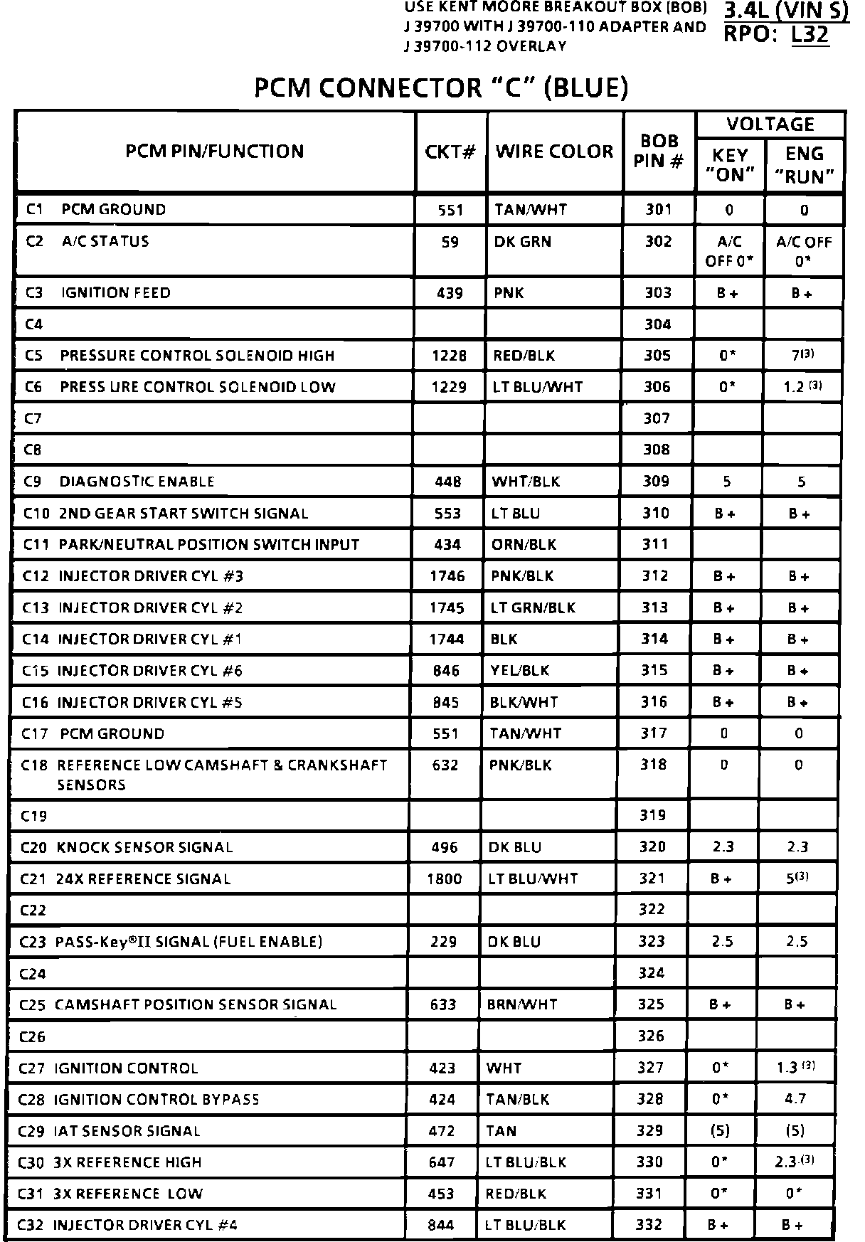 PCM Connector Voltages: