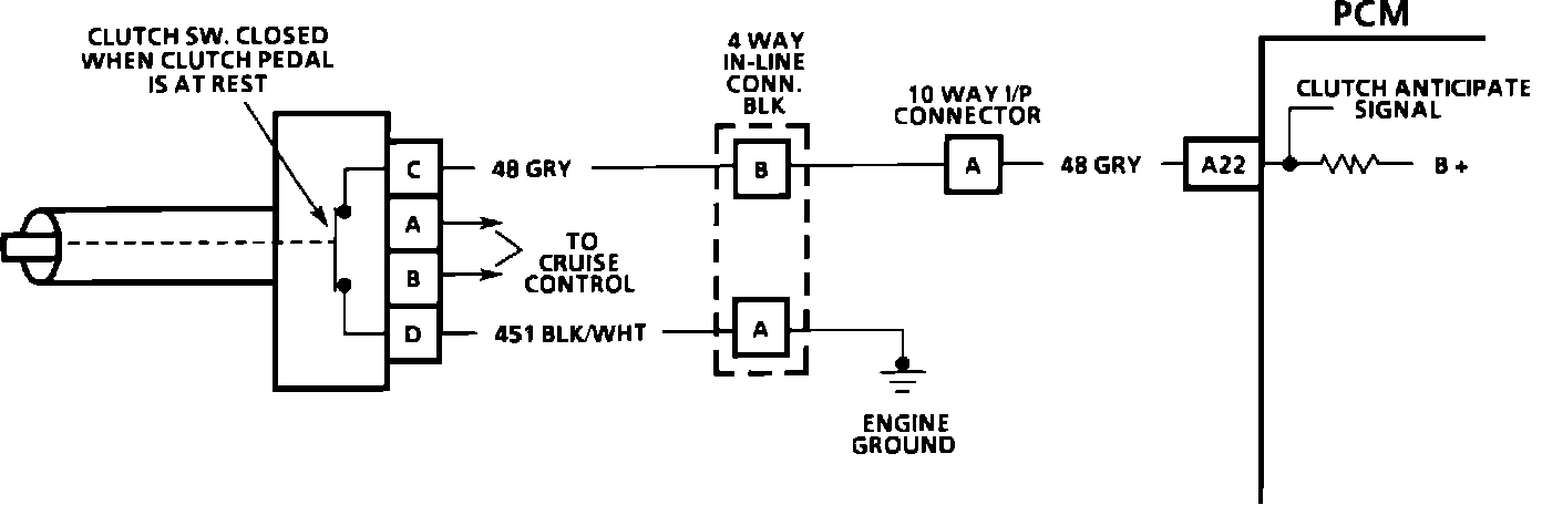 The PCM utilizes a Clutch Anticipate Switch to monitor clutch pedal status.