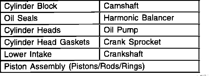 Any deficient engine component on the following list should be repaired according to Service Procedures in the applicable service manuals.