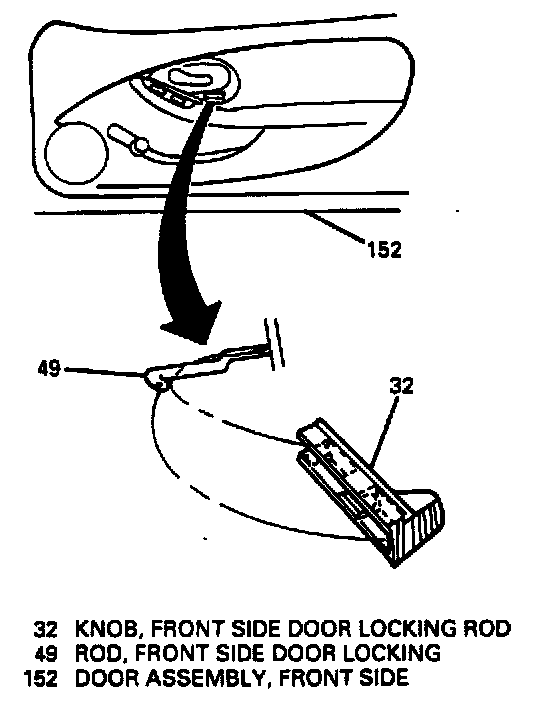 ^ Insert a small flat-bladed tool behind end of knob (32) and pry it away from locking rod (49).