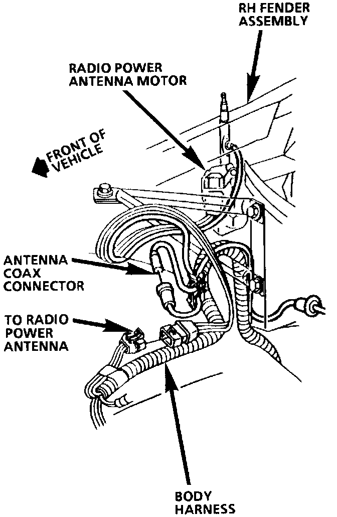 RH Rear Side Of Engine Compartment With Radio Power Antenna:
