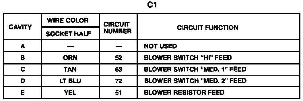 Harness Connector Faces: Heater-A/C And Rear Defogger Control Assembly- C1 (Description):