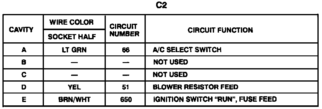 Harness Connector Faces: Heater-A/C And Rear Defogger Control Assembly- C2 (Description):