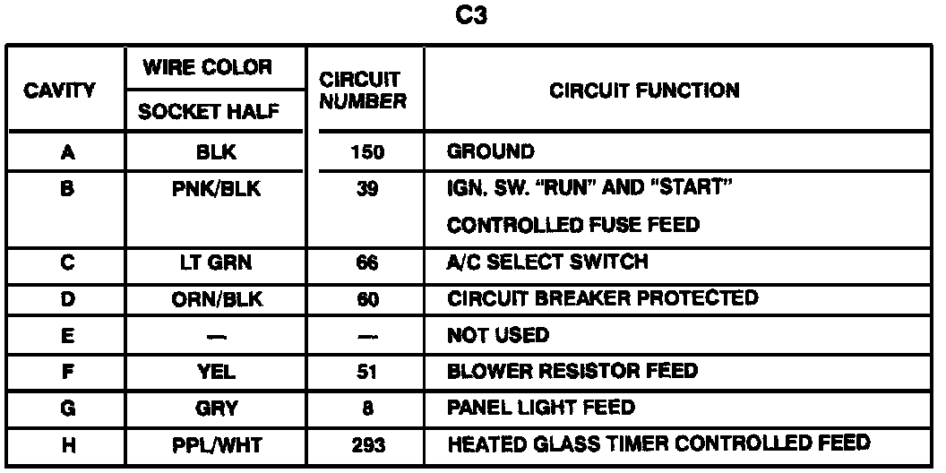 Harness Connector Faces: Heater-A/C And Rear Defogger Control Assembly- C3 (Description):
